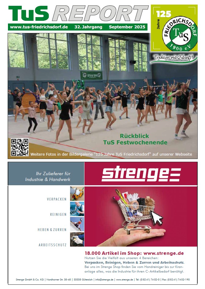 der TuS-Report Juli-August 2025 ist nun im PDF-Format online abrufbar. - So zeigt sich echte Verbundenheit zu unserem Sportverein TuS Friedrichsdorf